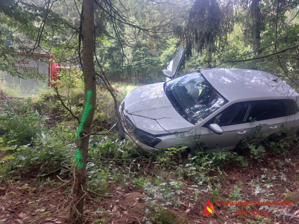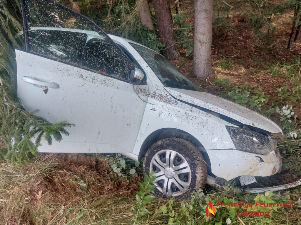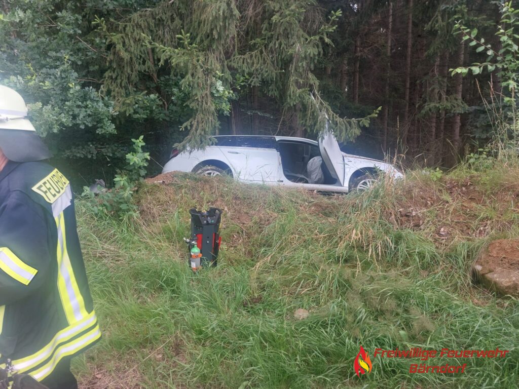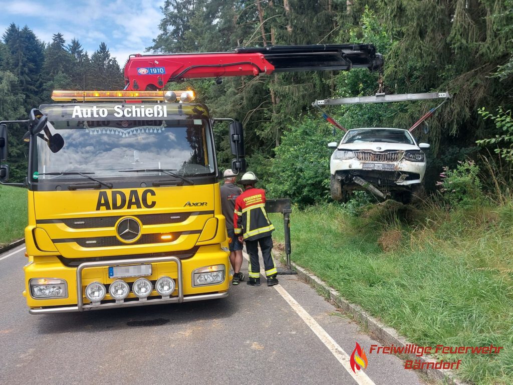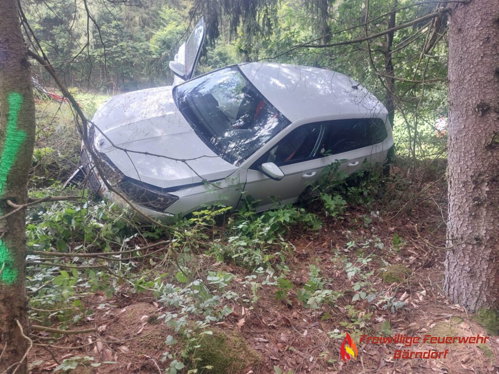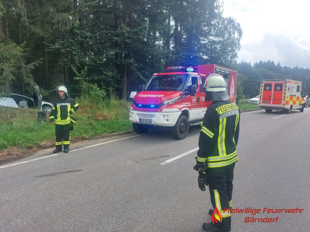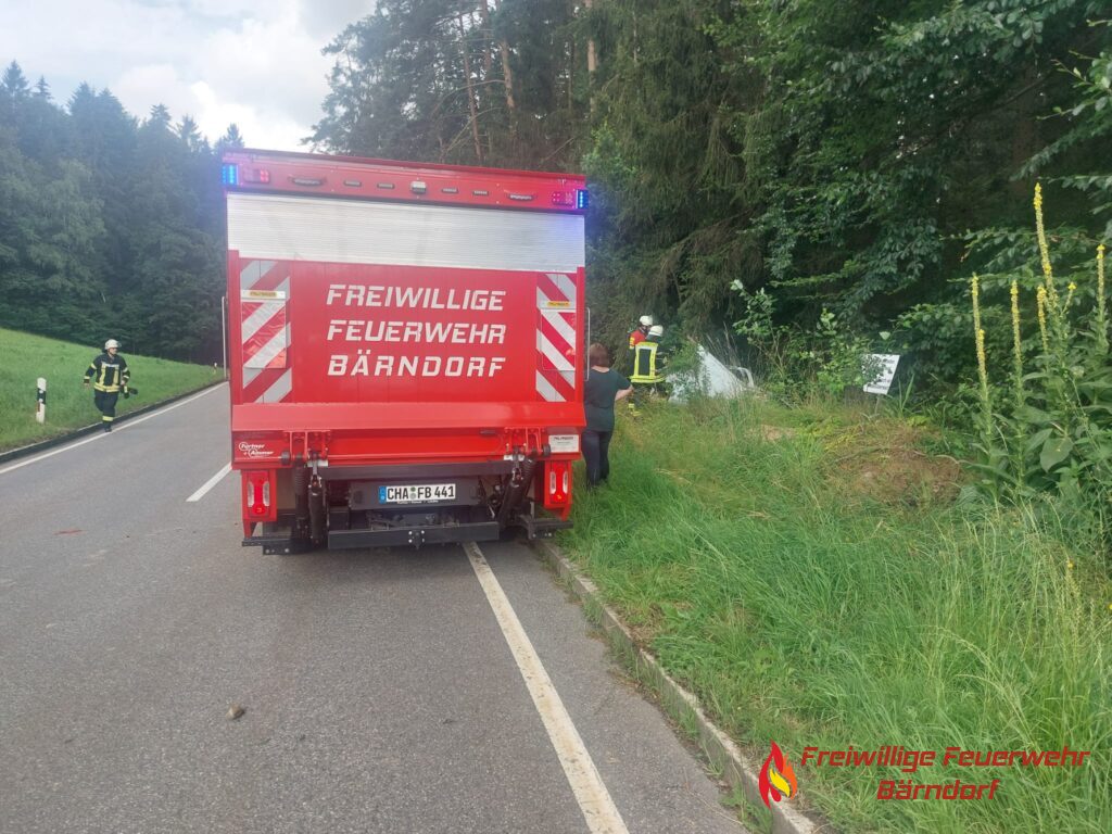 Am Einsatzort angekommen wurde die zum Glück nur leicht verletzte Fahrerin bereits von Ersthelfern versorgt. Die Fahrzeuglenkerin kam aufgrund noch ungeklärter Umstände auf der Strecke von Bärndorf in Richtung Blaibach nach links von der Straße ab und wurde erst durch einen Erdhaufen am Waldrand gebremst.