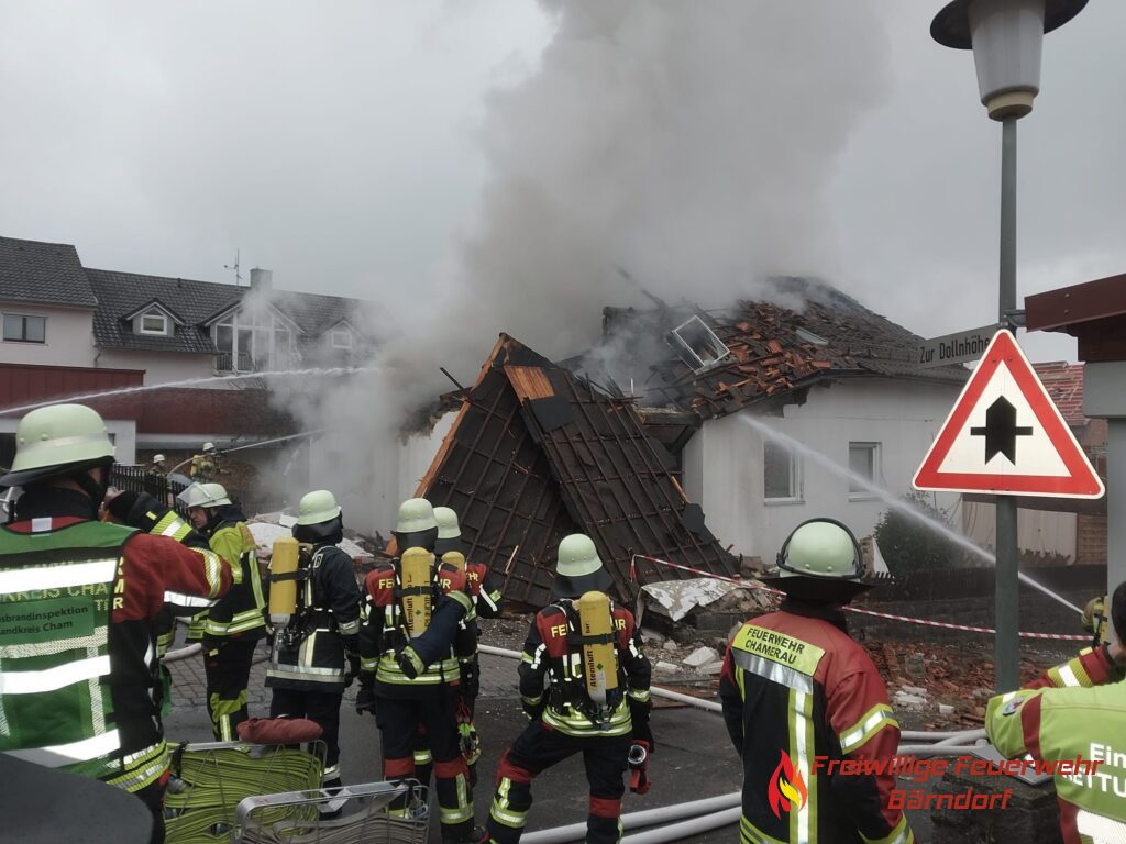 Am Freitagvormittag wurden wir mit der Einsatzinformation „Haus explodiert, Person in Gefahr“ in die Bergstraße nach Chamerau alarmiert.