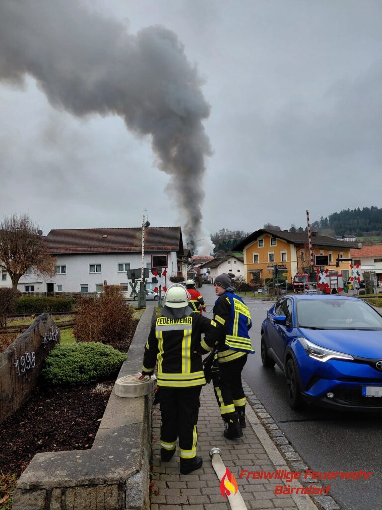 Bereits auf der Anfahrt war von weitem eine Rauchsäule erkennbar. Das Wohnhaus stand in Vollbrand und war bereits teilweise eingestürzt.